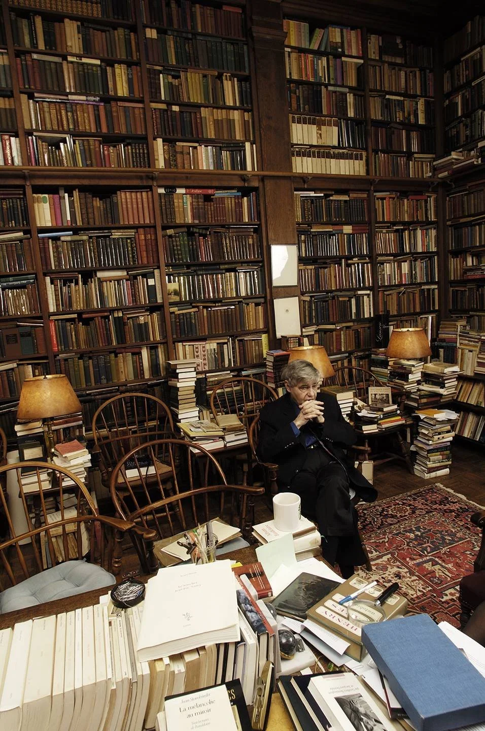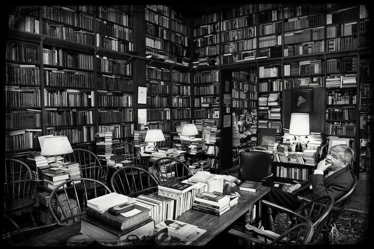 Dr. Macksey in the library, photo from JHU